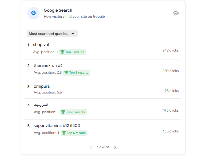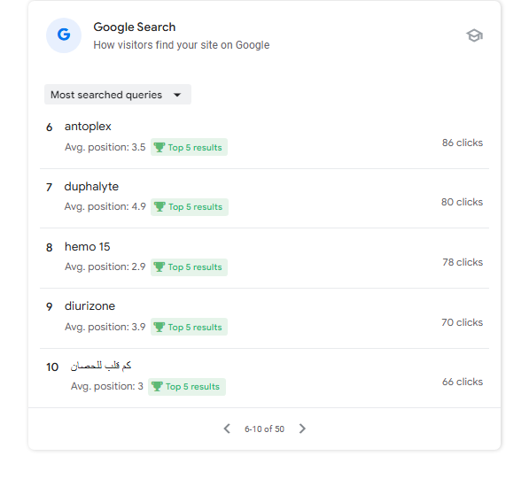 The average ranking for search keywords improved from the tenth position to the eighth position